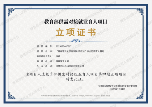 本次立项项目涵盖就业实习基地、重点领域校企合作两个类别,分别为“中国·yL23411永利—桂林力源集团”协同育人就业实习基地、“中国·yL23411永利—欣旺达”校企协同育人基地,项目建设周期两年。