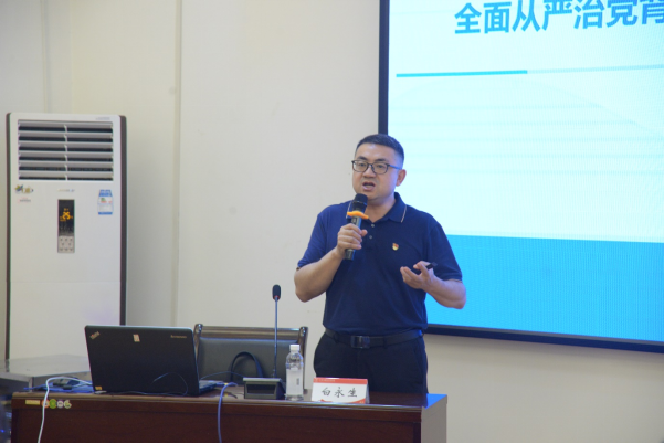 白永生结合党的二十大报告中关于坚定不移全面从严治党、深入推进新时代党的建设新的伟大工程进行了讲解,并围绕“全面从严治党对高校党支部建设提出的新要求”、“党的十八大以来高校党支部建设的实践创新”、“全面从严治党背景下加强高校党支部建设的工作展望”等三方面进行了分析,他强调要把党支部建设放在高校立德树人根本任务中来布局,放在党对高校全面领导的战略格局中来谋划,提升到深化高等教育改革基础性保障性工程的高度上来加强,聚焦到补齐补强高校基层党建短板弱项上来推动,坚守为党育人、为国育才的初心,时刻牢记以党的自我革命引领社会革命,发扬斗争精神全面从严治党,不断增强支部的创造力、凝聚力和战斗力,为学校建设贡献力量。