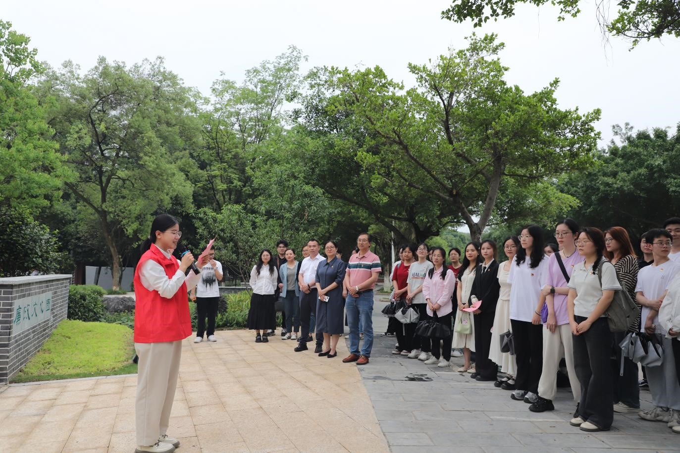 党员志愿者讲解学校廉政文化园