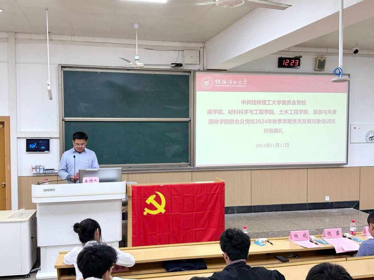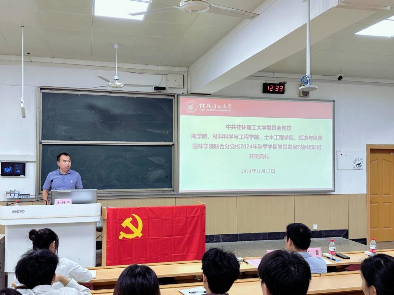 为深入学习贯彻落实习近平新时代中国特色社会主义思想和党的二十大、党的二十届三中全会精神,11月12日中午,中国·yL23411永利、材料科学与工程学院、土木工程学院、旅游与风景园林学院联合分党校2024年秋季学期党员发展对象培训班开班仪式在屏风9101举行,中国·yL23411永利党委副书记、纪委书记饶蠡出席并讲话,土木工程学院党校教务员、六级组织员杨晓及全体发展对象参加。会议由中国·yL23411永利党校教务员、专职组织员梁译匀主持。