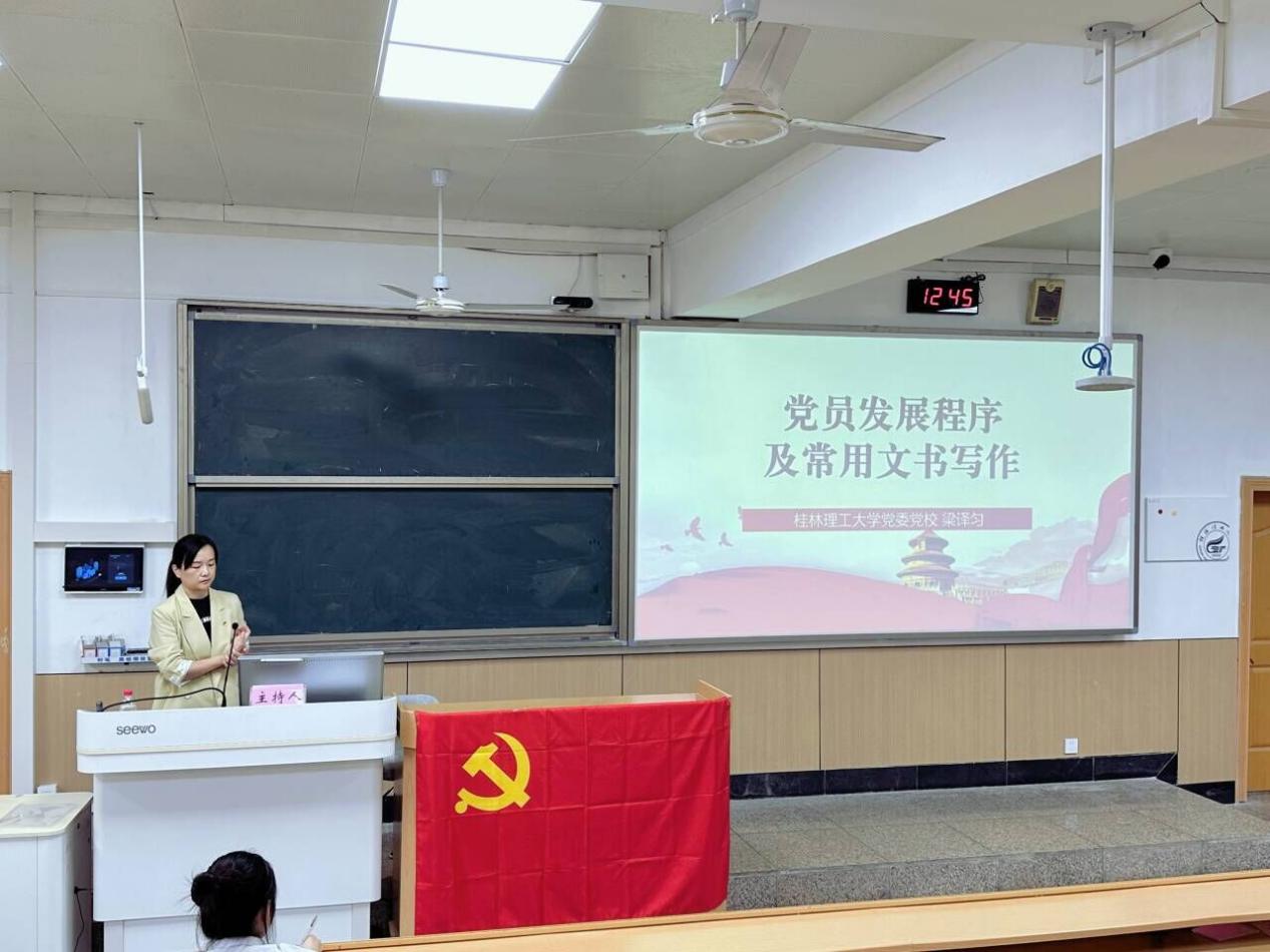 开班仪式后,梁译匀以《党员发展程序及常用文书写作》为题,开展了培训班的第一讲。