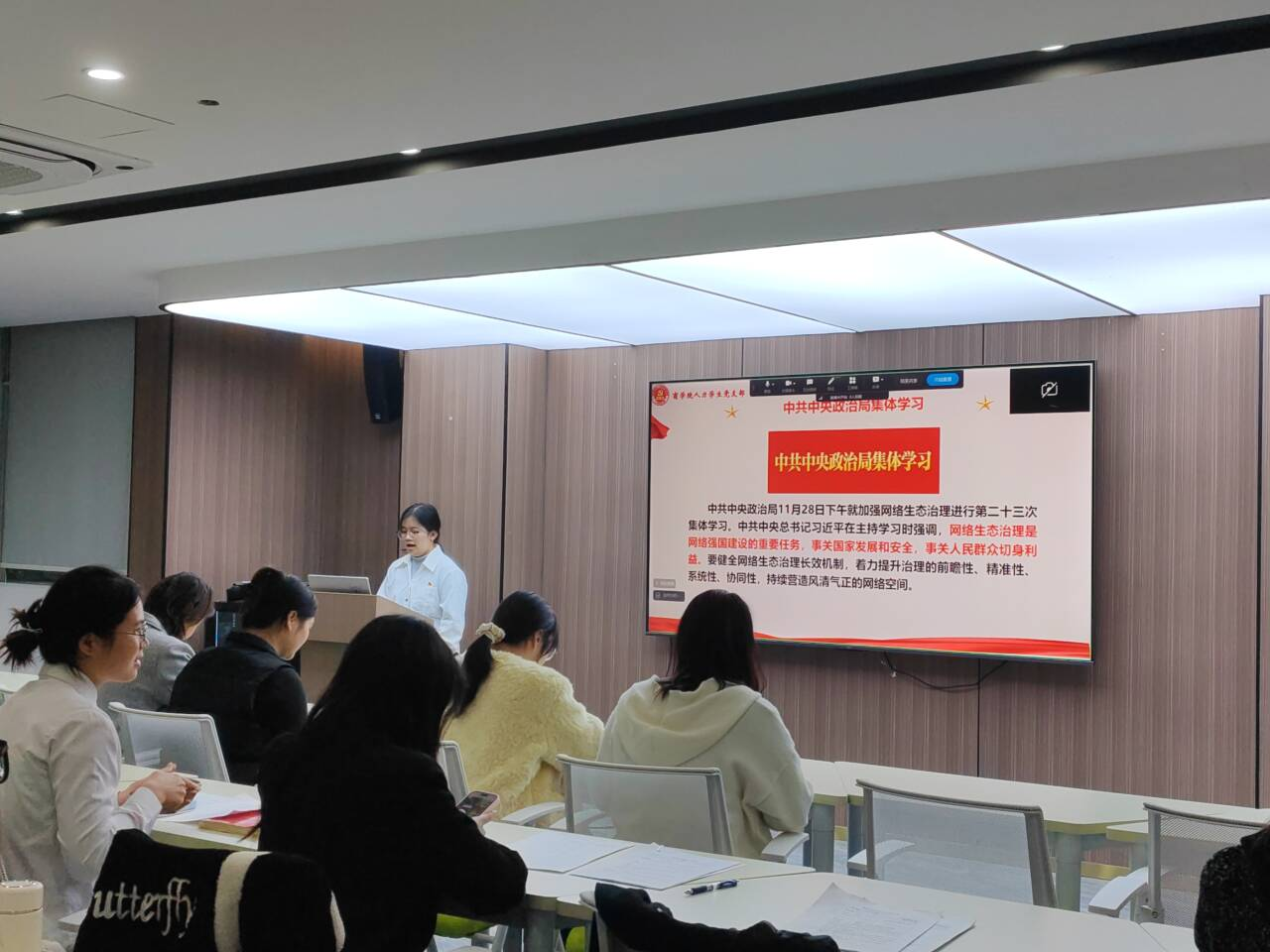 理论武装铸魂,筑牢思想根基。各党支部以集中学习研讨为抓手,系统组织党员深入学习习近平总书记在《求是》(2025年第23期)发表的重要文章《推进党的自我革命要做到“五个进一步到位”》,集中观看国家公祭日主题教育视频。学习过程中,党员们结合学科专业特点与岗位工作实际开展交流研讨,切实将学习成果内化于心、外化于行,进一步锤炼党性修养、践行初心使命。