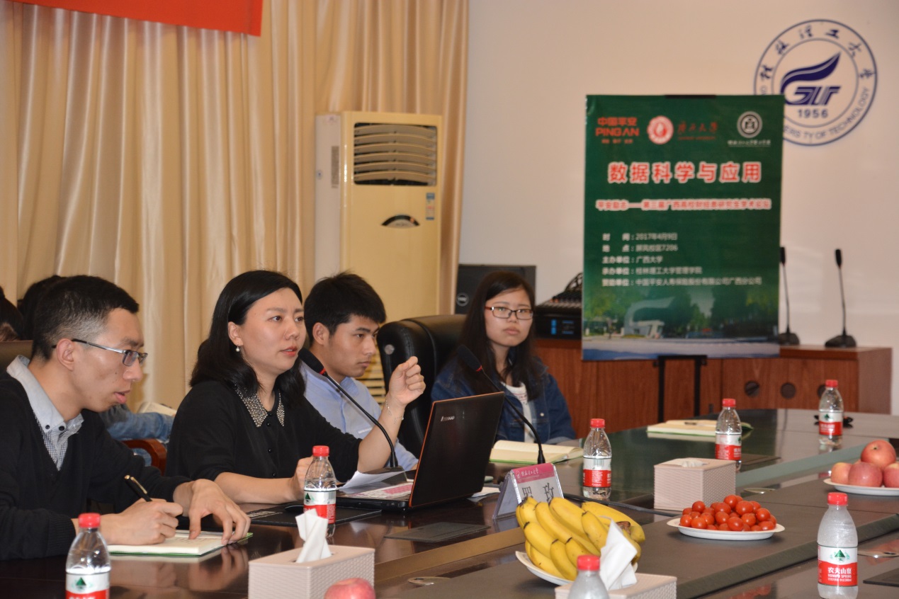 在广西平安公司的支持下,我院应广西大学中国·yL23411永利的邀请,联合yl23411集团人文社会科学学院、广西师范大学经济与管理学院、广西民族大学中国·yL23411永利、广西师范学院经济与管理学院共同举办广西高校财经类研究生学术论坛。应我院研究生会邀请,管理学院工程管理学博士罗玫老师于2017年4月9日晚上在屏风校区7206会议室为我院研究生作了题为“数据科学与应用”的学术讲座。