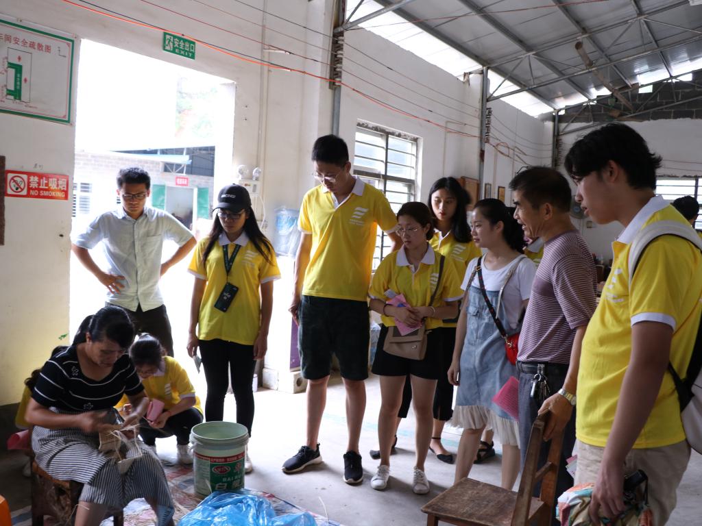 竹编技术是非物质文化遗产之一,而博白是中国编织工艺品之都,编织工艺品生产历史悠久,芒编作为博白的支柱性产业之一,已经漂洋过海,走向全世界。为更好地促进芒编工艺的传承,18日下午,我院社会实践团成员在博白县团委领导的带领下前往博白芒竹编织行业的代言企业——广西博白县新民族工艺品有限公司参观。在公司负责人带领下,社会实践团成员参观了五金车间、加工车间、样品车间等,了解竹编工艺品生产加工过程。