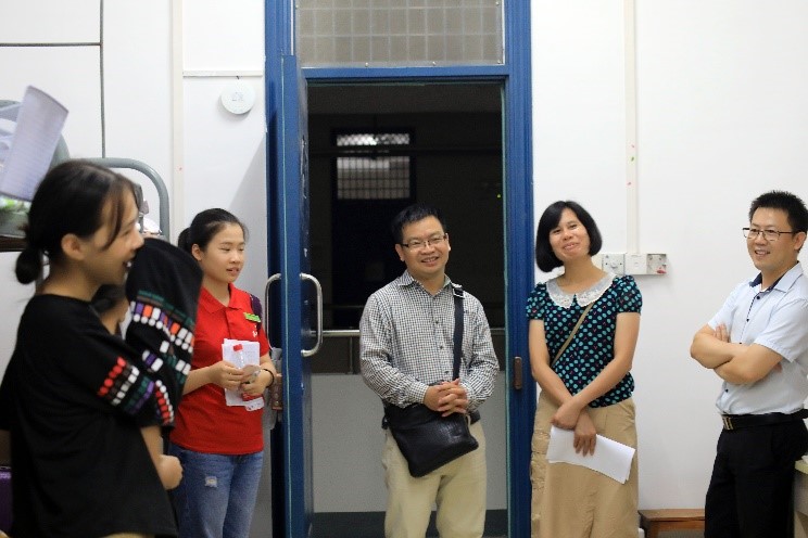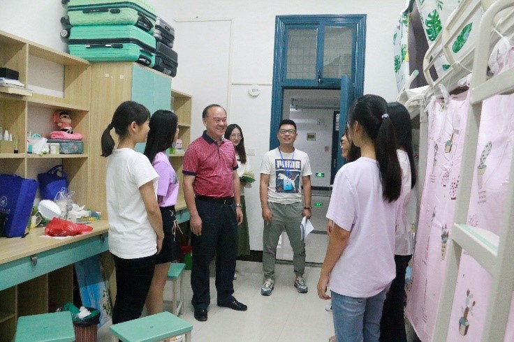 为了解新生到校后的生活情况、住宿状况及思想动态,消除新生对新环境的陌生焦虑感,9月9日晚19:20左右,我院党委书记周章明、院长连漪、副院长蒙永亨、党委副书记沈菲菲、2018级各班班主任和年级辅导员等一行人,走访学院2018级新生宿舍。