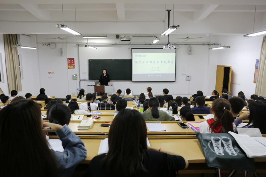 在大会上,各年级结合具体的安全教育案例,从多个方面讲述本次假期安全注意事项。首先,对即将到来的国庆节假期,相应辅导员老师宣讲了假期的相关通知及规定,并重点从人身安全、财产安全、出行安全、网络安全(网络诈骗)、宿舍安全、饮食安全、防火防盗防骗、禁止到江河湖泊等任何水域游泳等方面进行安全教育,要求学生增强安全防范意识和自我保护能力,确保人身和财产安全。此外,着重提醒同学们合理利用假期时间,努力学习、加强锻炼,增强体质。