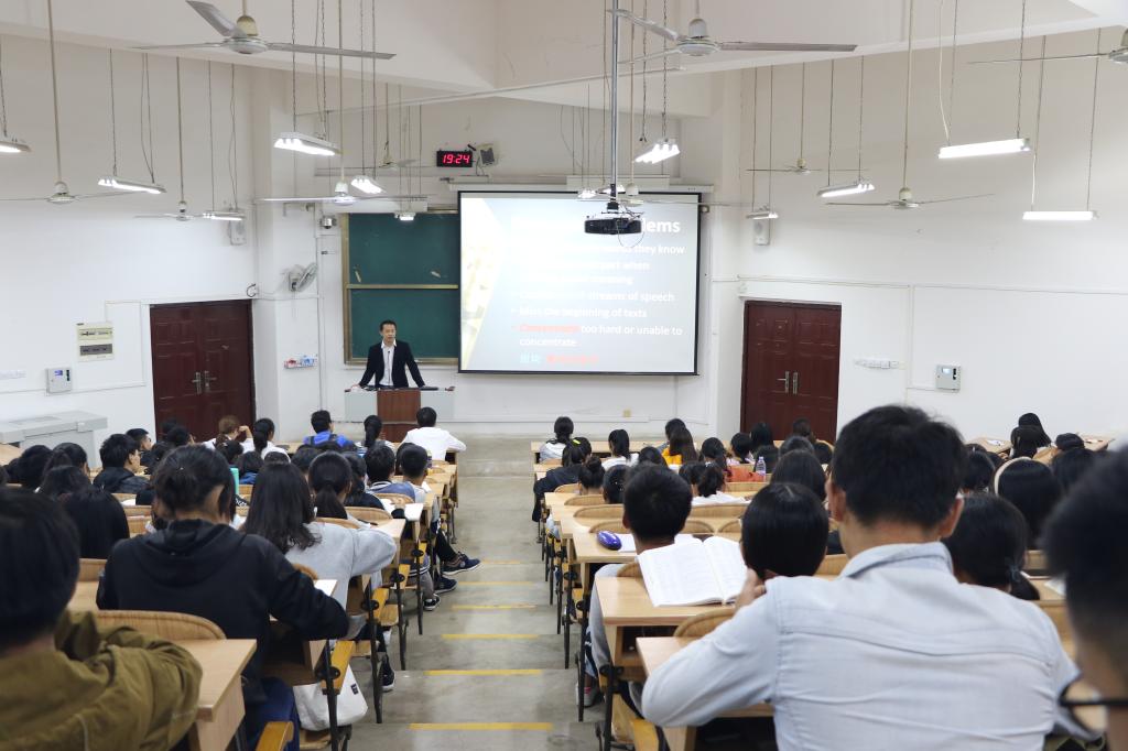 为了帮助学生提升大学英语四级考试学习技巧,我院特邀外国语学院徐爱琳老师于11月6日晚在雁山校区7139进行“大学英语四级听力技巧”的专题讲座,我院2018级同学参加本次讲座。