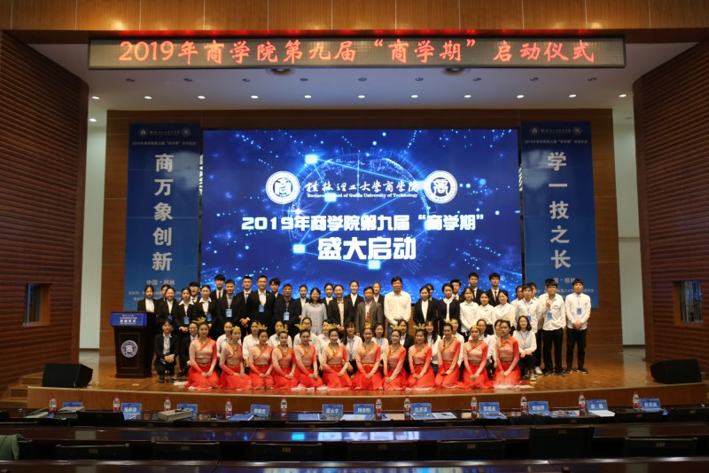 2019年4月19日15:00,我院第九届“商学期”启动仪式在屏风校区图书馆报告厅隆重举行,学院党委书记周章明、副院长蒙永亨、党委副书记沈菲菲、副处级组织员黎超业、院长助理梁健爱、实验室主任王兴中及全体学工人员出席本次活动。