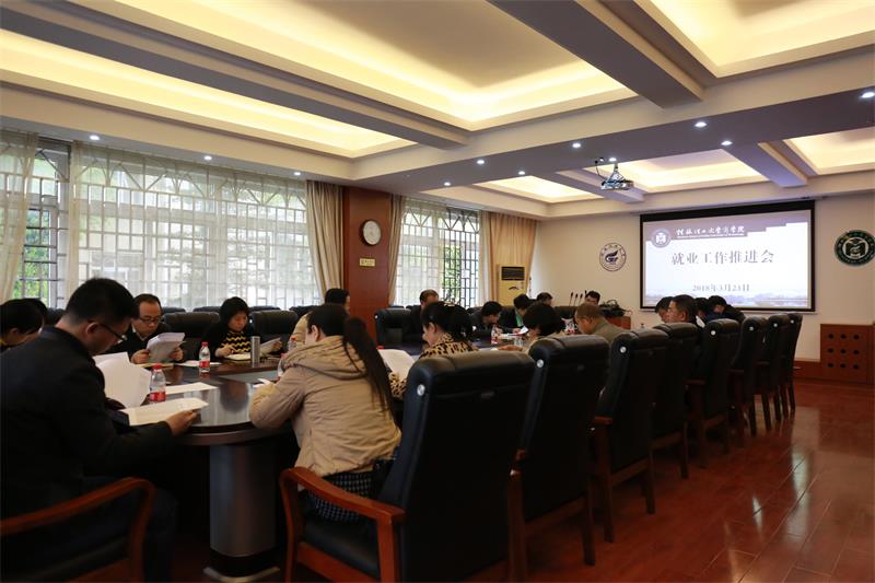 为进一步推进学院2018届毕业生就业工作,提高毕业生就业率和就业质量, 3月23日下午,我院在屏风校区7206会议室召开了2018届毕业生就业工作推进会。学院行政领导成员、各教研室负责人、毕业生指导老师参加了此次会议。学院党委书记周章明主持会议。