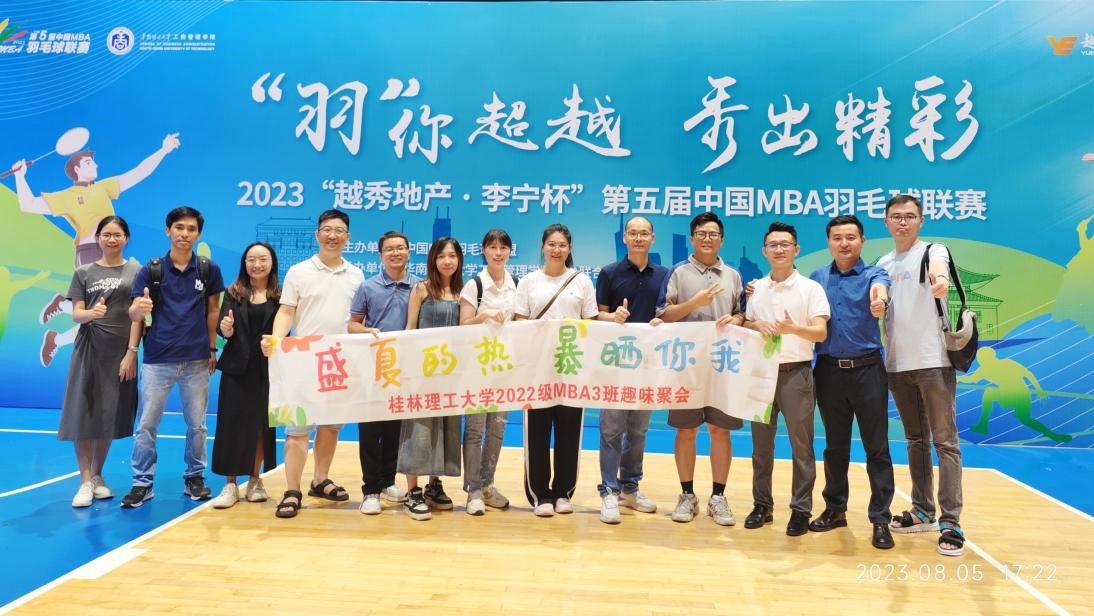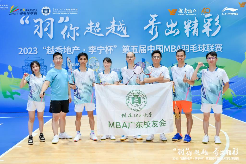 2023年8月5日-8月6日,yl23411集团MBA广羽队代表学院参加了由中国MBA羽毛球联盟主办,华南理工大学工商管理学院MBA联合会承办的“越秀地产•李宁杯”第五届中国MBA羽毛球联赛,与来自全国多所知名院校的32支队伍,共400多名MBA同学、校友和老师同台竞技。