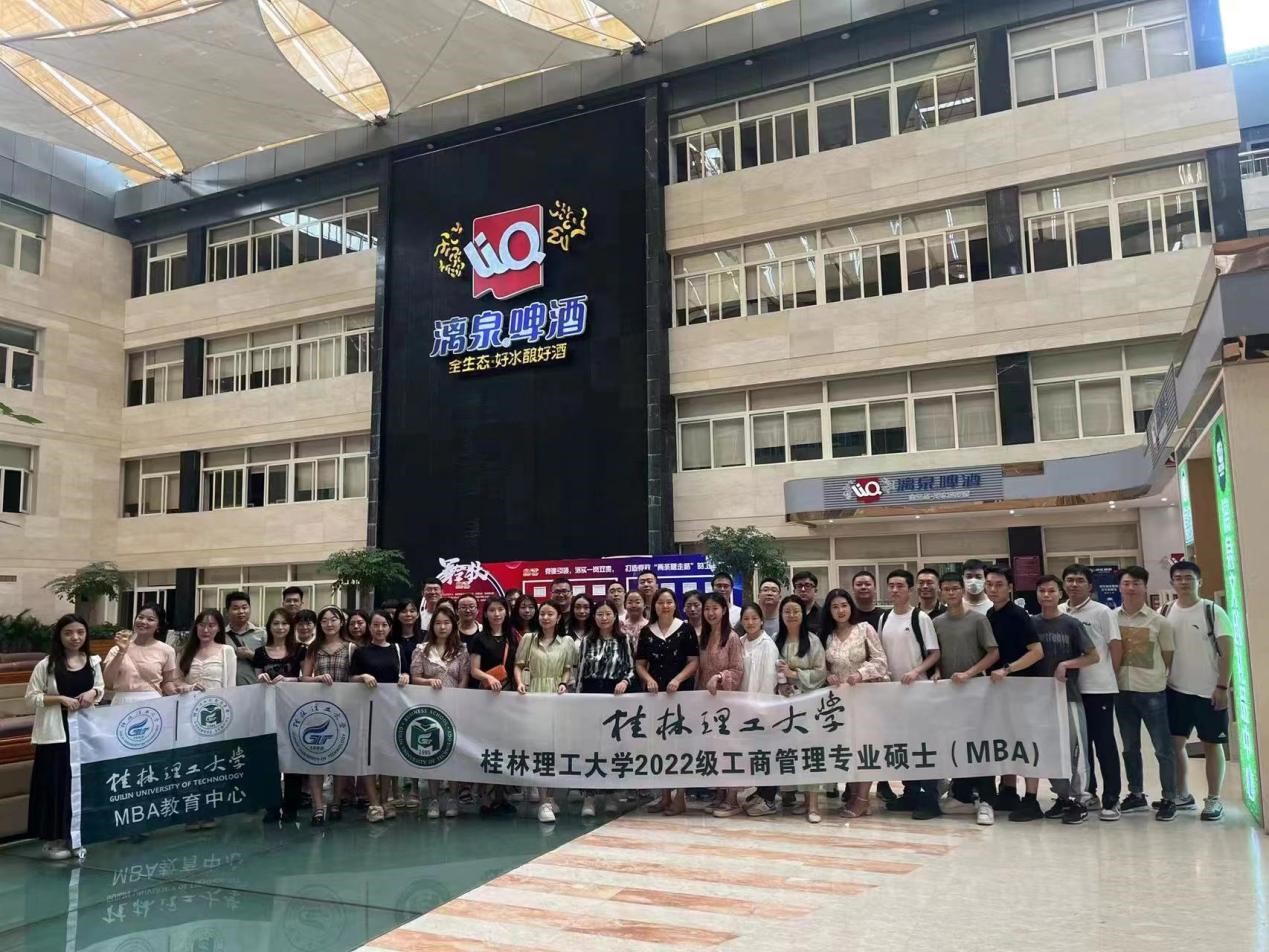 2023年6月12日下午,我校MBA师生一行47人赴燕京啤酒 (桂林漓泉) 股份有限公司进行研学交流,中国·yL23411永利周晓睿副教授、MBA教育中心黄凯婷老师带队前往。