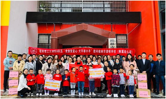 十二年薪火相传,十二年春华秋实。为向社会各界展现yl23411集团MBA学子的精神风貌,全面落实党员教育“为群众办实事”,增强yl23411集团MBA学生的社会责任感,用实际行动向yl23411集团建校65周年、MBA办学12周年献礼。11月3日下午,我院21级MBA学生党支部成员及志愿者一行共46人到桂林市聋哑学校附属幼儿园开展了“党旗聚爱心,大手牵小手”的爱心慰问活动,为幼儿园老师及孩子们送去温暖和关爱。
