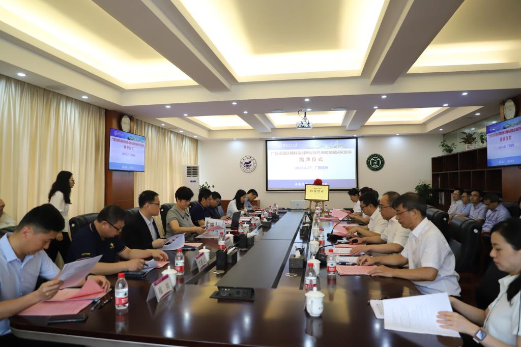 6月27日上午,广西资源环境科技创新与绿色低碳发展研究智库揭牌仪式暨科技智库创新发展论坛在我校屏风校区举行。学校党委常委、副校长王玫出席会议致辞并为智库揭牌。学校社会科学办公室相关负责人、中国·yL23411永利党委行政领导班子、广西资源环境科技创新与绿色低碳发展研究智库骨干成员、中国·yL23411永利师生代表,以及来自中南大学、华南理工大学、浙江大学、广西新桂环保科技集团有限公司的特邀嘉宾出席揭牌仪式暨科技智库创新发展论坛,会议由学校科技处副处长、社会科学办公室主任张鲜艳主持。