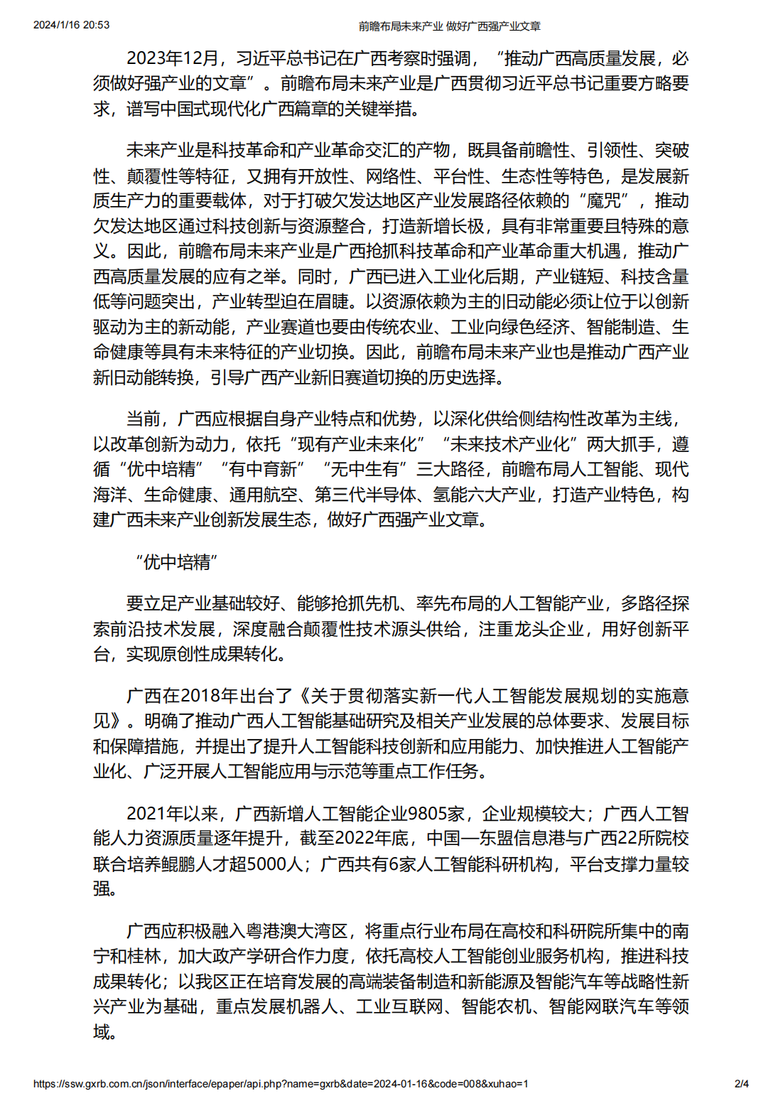 来源:广西日报 2024-01-16 008版 时间:2024-01-16 作者:李 雷 牛佳欣 编辑:王贤 点击: