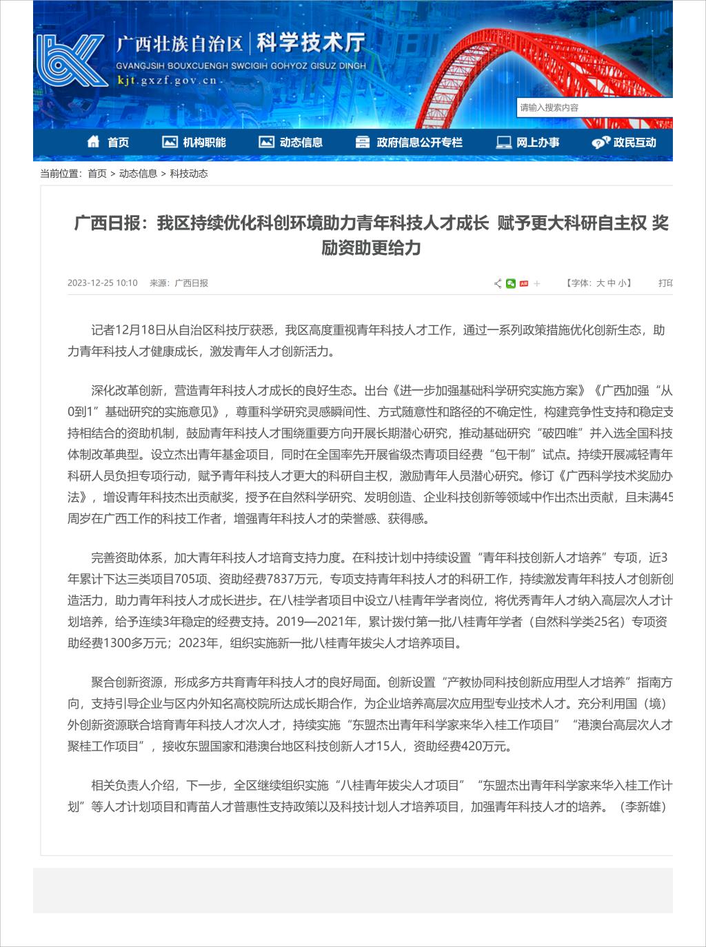 来源:广西壮族自治区科学技术厅 时间:2023-12-27 作者: 编辑:王贤 点击:
