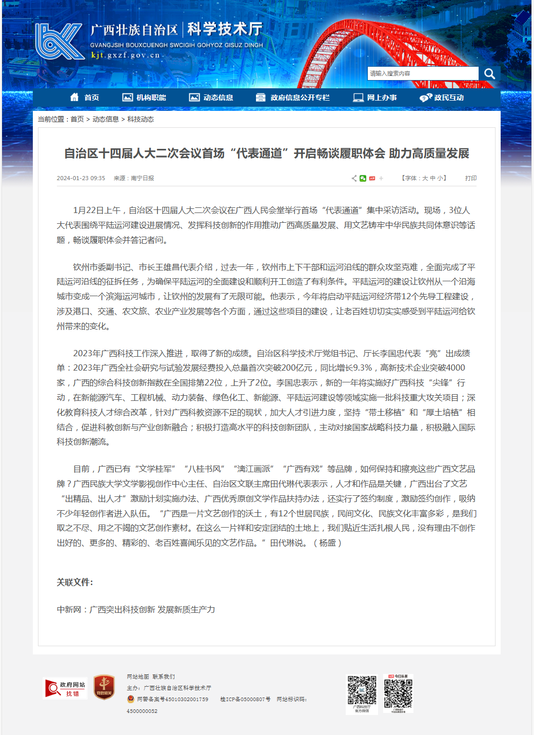 来源: 时间:2024-01-25 作者:广西壮族自治区科学技术厅 编辑:杜若菡 点击: