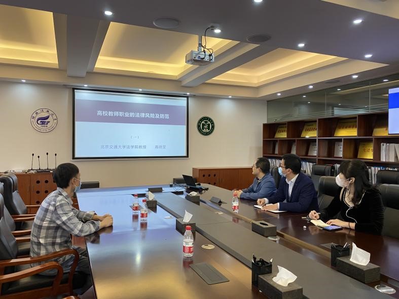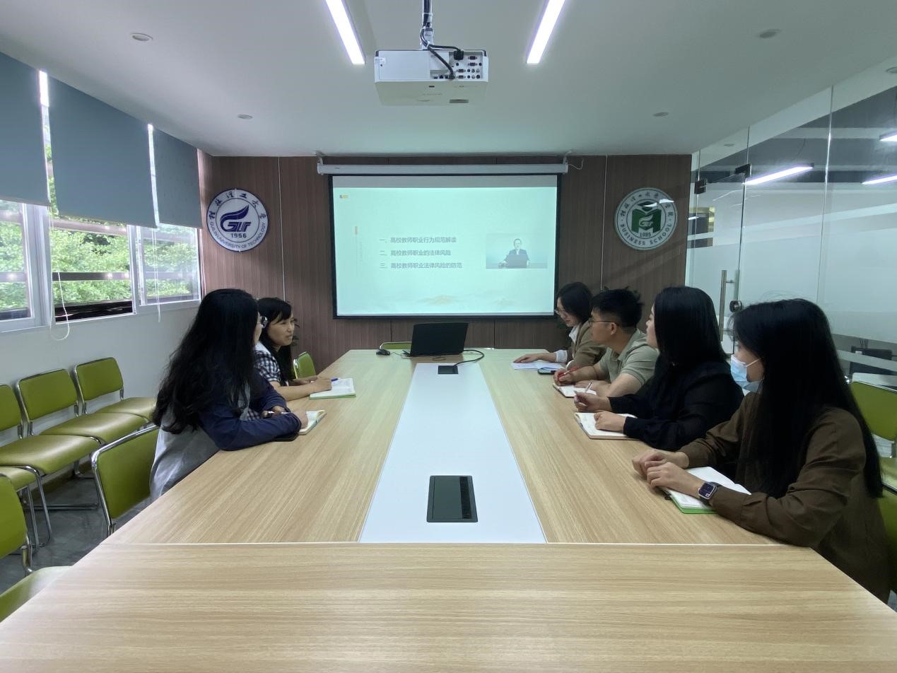 2022年5月18日下午,工商管理教研室全体老师在7510,召开了“师德大讲堂”2022年 (第1期)学习研讨会。会议由系主任鞠海龙主持。 与会老师观看了高晓莹博士北京交通大学法学院教授的《高校教师职业的法律风险及防范...