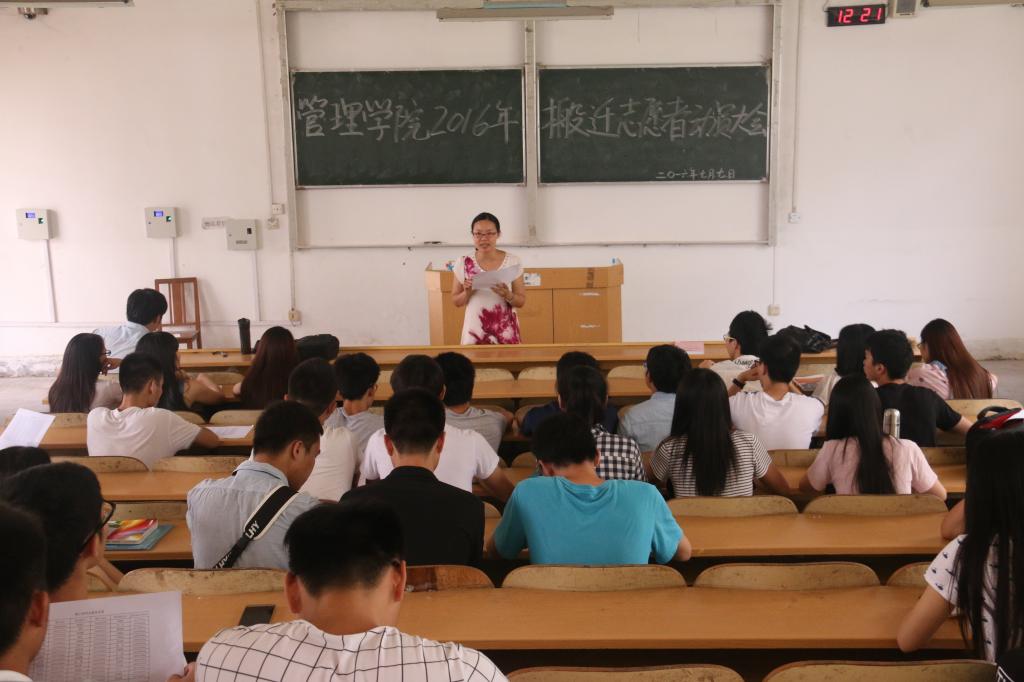 为更加安全、有序、顺利的完成学生搬迁工作。7月7日中午,我院在屏风校区2101教室召开2016年学生搬迁志愿者动员大会,我院全体学生志愿者们参加了本次大会,学院学工组组长沈菲菲老师出席并主持本次动员大会。  ...