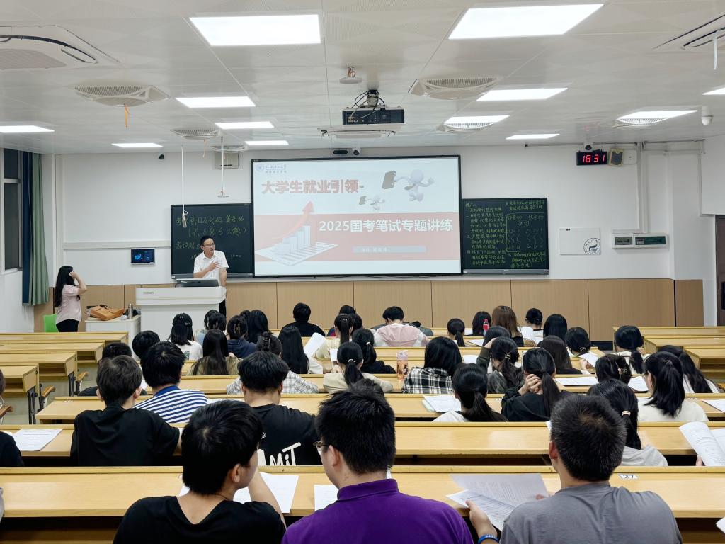 为助力我院2025届毕业生全面把握公务员考试报考动态,科学规划备考策略,学院于10月20日在屏风校区9509教室成功举办公考备考专题讲座。此次讲座吸引了80余名学生参加,讲座由弘朗教育公务员讲师团队贺强老师主讲。贺强剖析了2025年考公形势变化,并围绕公务员考试基本流程、岗位选择等问题向学生作了详细介绍,通过具体案例帮助学生们厘清了岗位筛选与选择的策略与方法,并重点围绕行政职业能力测试和申论两大模块,分享了宝贵...