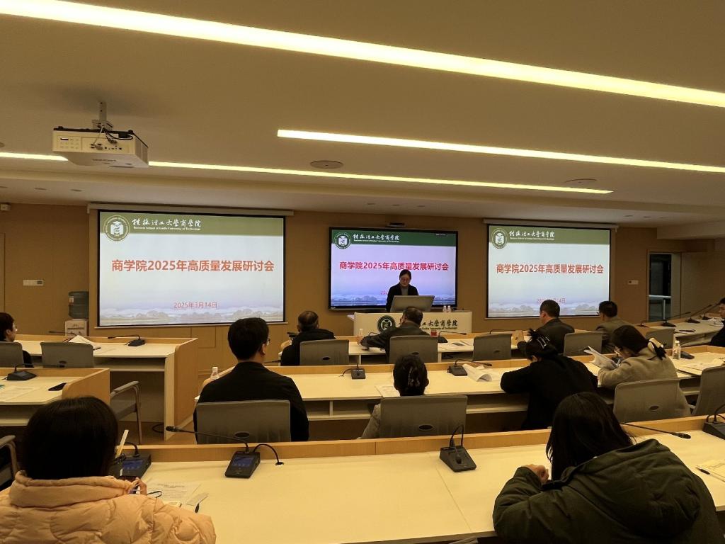 3月7日下午,学院在屏风校区7702报告厅召开2025年高质量发展大会暨全体教职工大会。学院领导班子成员和全体教职工参加了本次大会,会议由学院党委书记白凌婷主持。本次会议以“干字当头 增强信心 迎难而上 奋发有为”为主题,深入贯彻落实习近平新时代中国特色社会主义思想,全面落实学校党委三届九次全会重点任务以及学校党委2025年高质量发展大会的各项决策部署,坚持干字当头、奋发有为,努力交出2025年高质量发展的商院新答...