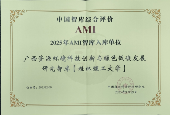 近日,由中国社会科学院中国社会科学评价研究院主办的第8届中国智库建设与评价高峰论坛在北京召开,此次会议公布了中国智库综合评价研究项目(AMI)2025年评审结果,我校广西科技智库“广西资源环境科技创新与绿色低碳发展研究智库”脱颖而出,成功入选“2025年AMI智库入库单位”,成为我区首家入选该榜单的广西科技智库。我校广西科技智库紧紧围绕广西区位优势及我校学科布局,秉持“突出使命引领,突出区域属性,突出行业特色...
