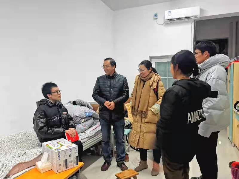 为扎实推进“我为群众办实事”实践活动,进一步做好支部与陈明辉同学的跟踪帮扶,教工第三党支部刘黔川、胡金玉、李进生于12月29日开展元旦送温暖走访慰问活动。本次活动,再次深入陈明辉同学宿舍,询问学生身体和生...